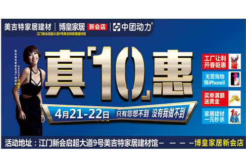 【建材家居】4月21-22日美吉特家居建材·博皇家居新会店“真十惠” 建材家具厂价钜惠 港星邓颖芝亲临助阵