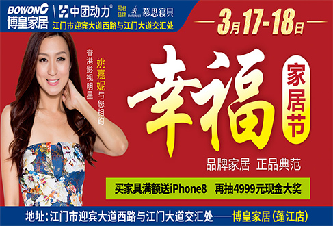 【幸福家居节】博皇家居(蓬江店)3月17-18日 全场家具低至半价起、港星姚嘉妮亲临助阵零距离互动
